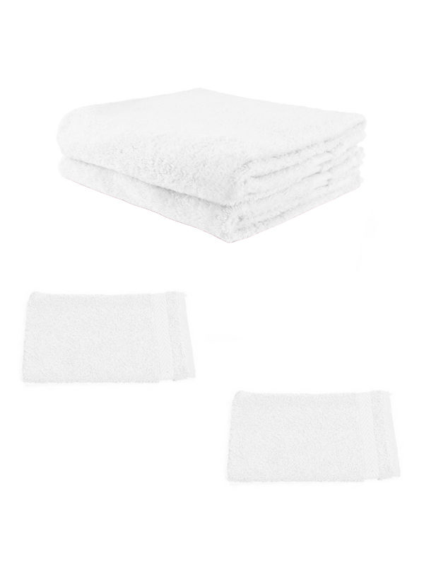 Handdoek pakket bestaande uit een: 2x handdoek (wit) en 2x washand (wit)